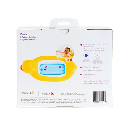 Transition to the big tub safely with this inflatable duck bathtub that has white hot® technology to let you know when the water is too hot.